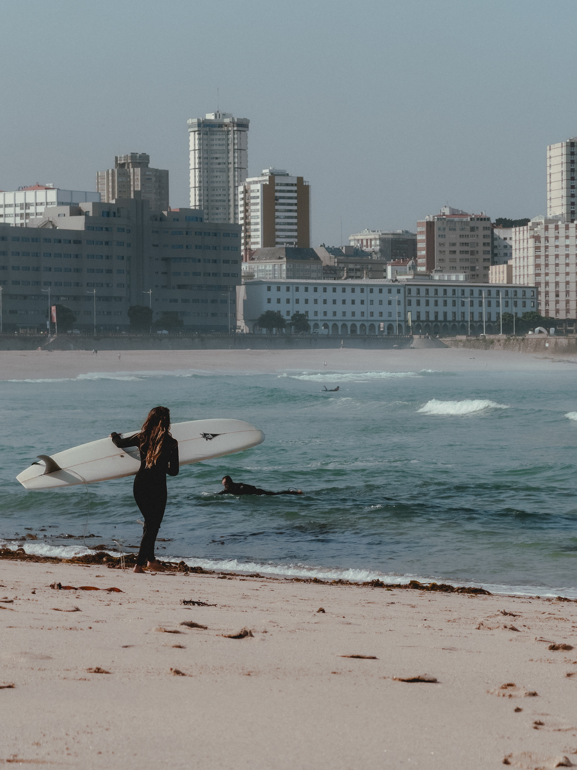 "Longboarder entrando al baño". Fotografia digital. A Coruña, verano 2024.